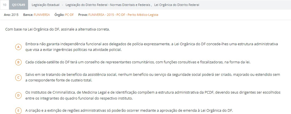 A Lei Orgânica do DF tem quase 500 questões de prova já aplicadas.